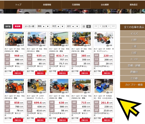 どの機械も弊社でしっかりメンテナンスを済ませ、「中古在庫」として掲載開始しております。