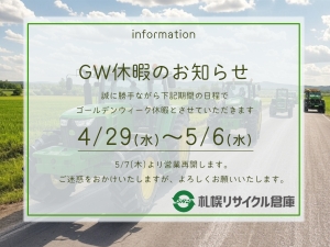 平素は札幌リサイクル倉庫をご愛顧頂き、誠にありがとうございます。
