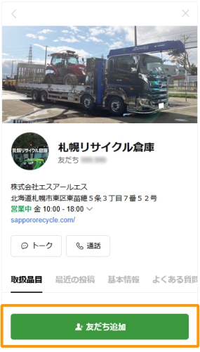 札幌リサイクル倉庫のLINEアカウントを友だち追加後、「トーク」へお進みください。